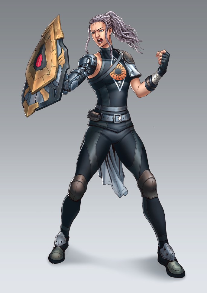 Exalt Baliste, another of Spheire’s four planetary leaders. She belongs to Indom, a nation blessed with vast durability and physical strength, both tested by the ages. Where some in neighboring lands might boast Gifts capable of cratering a mountainside, the strongest of Indom’s Warrior class can carve the mountain range itself with little more than fists.